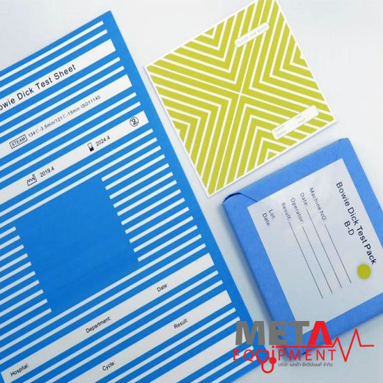 แผ่นตรวจสอบประสิทธิภาพการทำให้ปราศจากเชื้อ ใช้ตรวจสอบกระบวนการฆ่าเชื้อว่าได้ตามเกณฑ์หรือไม่ โดยเทปจะเปลี่ยนสีเมื่อกระบวนการฆ่าเชื้อด้วยไอน้ำสมบูรณ์แล้ว ถูกต้องและแม่นยำ